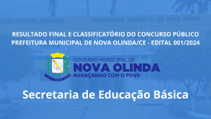 RESULTADO FINAL E CLASSIFICATÓRIO DO CONCURSO PÚBLICO PREFEITURA MUNICIPAL DE NOVA OLINDA/CE – EDITAL 001/2024. setembro 9, 2025